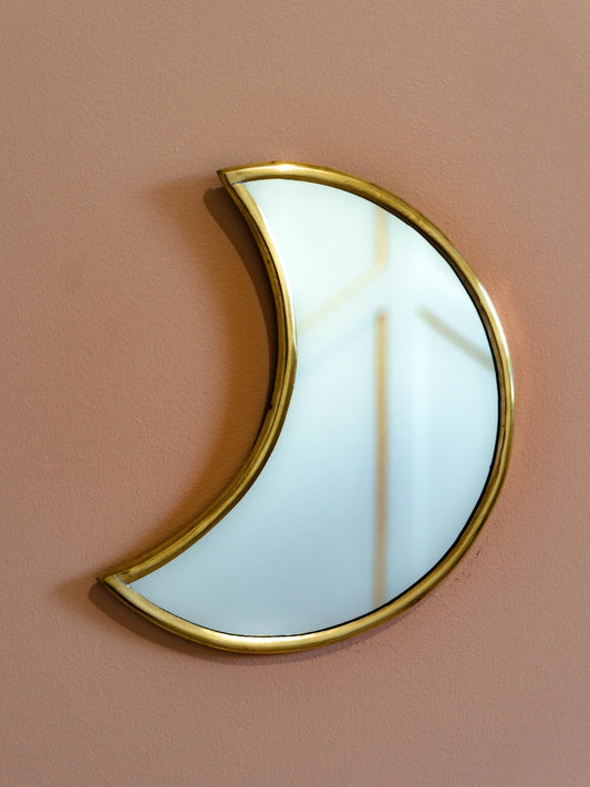 Miroir LAYALI en forme de Lune, serti à la main en laiton doré
